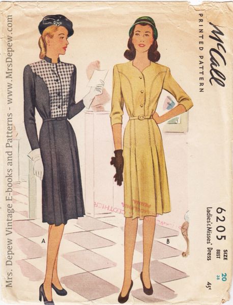 Vintage Sewing Pattern 1940s Mccall 6205 Dress 38 Bust